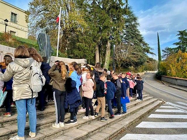 A l'approche du 11 novembre, journée nationale de commémoration de l'Armistice de 1918, les élèves du CP au CM2 se sont rendus ,ce lundi 10 novembre, au monument aux morts de la commune. Accompagnés par leurs enseignants, ils ont découvert ce lieu chargé d'histoire et de mémoire.